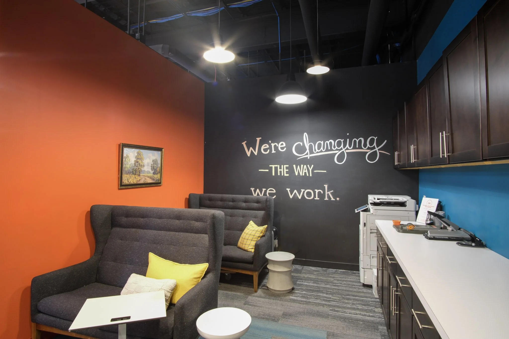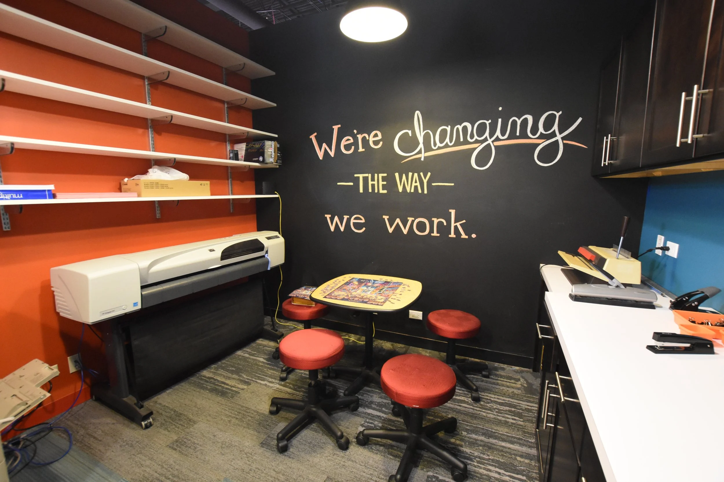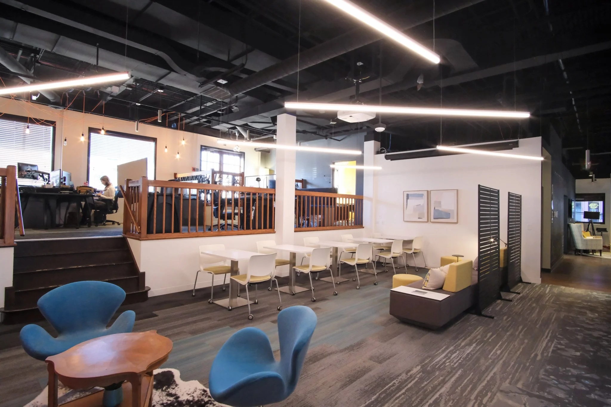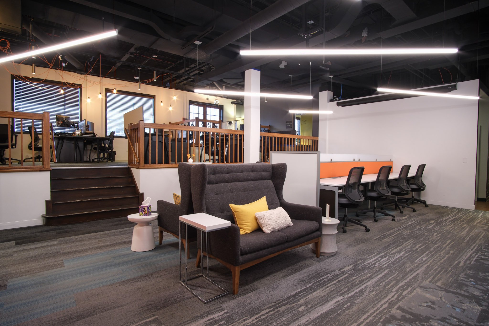 We realized Geneva needed more separated, heads-down work areas, even beyond what was already available upstairs. Moving away from large bench seating toward smaller, defined workspaces reflects how people are working now, and it’s been a very successful change.